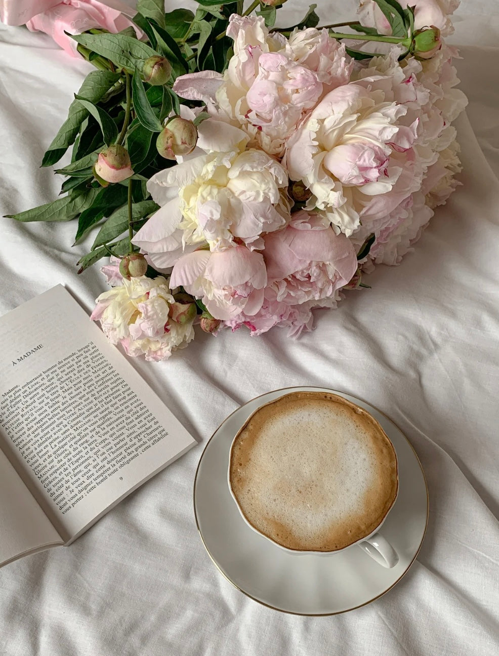 Bouquet du fleuriste blanc et rose pastel - fleurs de saison